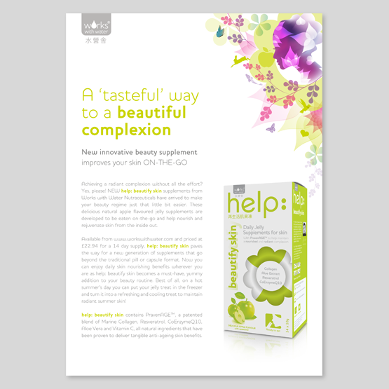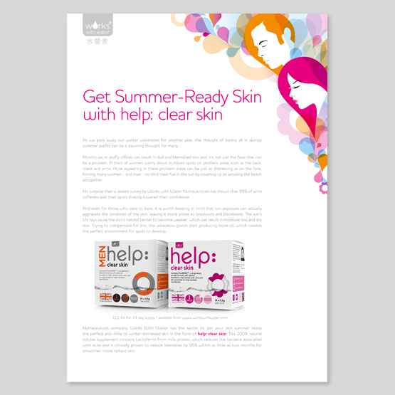 Brief: To create eye catching press release templates to promote the Works with Water products. Designs were also used for gift-with-purchase mirror and for promotional website banners.